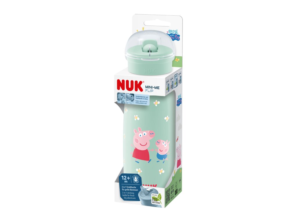 Fľaša NUK Peppa Pig Mini-Me Flip, s náustkom 2v1 odolným proti hryzeniu, netečúca, 450 ml, od 12 mesiacov.