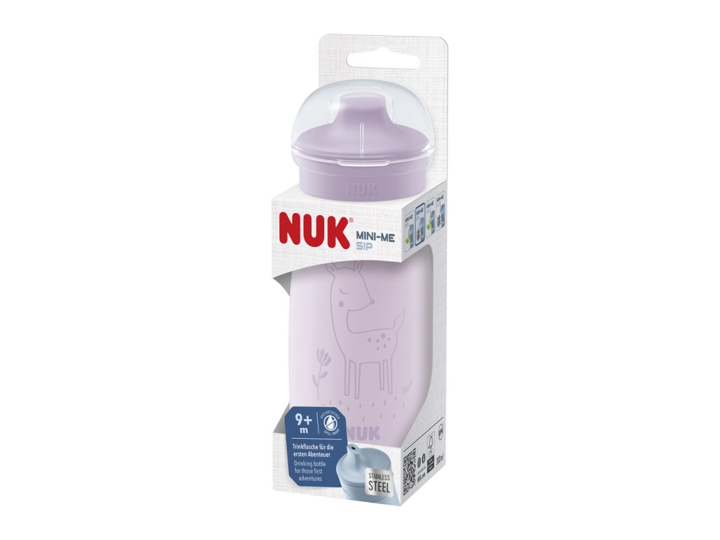 Je príjemné, keď dojčenská fľaša na pitie osloví nielen deti, ale aj rodičov. Nová fľaša NUK Mini-Me Sip je vhodná pre deti od 9 mesiacov. Vhodná pre deti - moderným a minimalistickým spôsobom. Praktická a štýlová zároveň. Nerozbitný plast je vyrobený z viac ako 90 % z prírodných surovín. Inovatívny cumlík hravo odolá detským zúbkom. Jasný záväzok k udržateľnosti a kvalite.