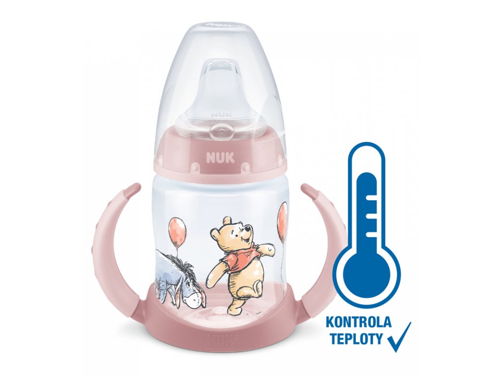 NUK Fľaštička na učenie DISNEY-Medvedík Pú s kontrolou teploty 150 ml ružová