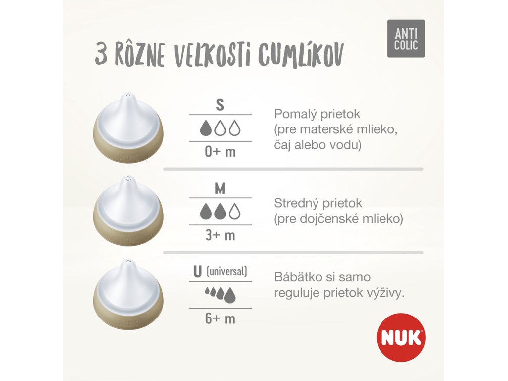 Cumlík NUK Perfect Match, vyrobený z mäkkého silikónu, neobsahuje BPA, veľkosť M, od 3 mesiacov, 2 kusy.