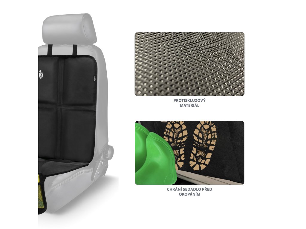 Praktická ochrana sedadlá pod autosedačku Zopa je užitočná pre každého rodiča, ktorý chce svoje auto udržať v čistote a ochrániť ho pred možným poškodením. Sedadlo autá chráni pred nechcenými škvrnami a rozliatymi tekutinami. Okrem praktickej funkcie plní aj užitočnú, sieťované vrecká v spodnej časti ochrany sedadlá sú vhodné pre uloženie hračiek, desiaty, či iných drobností, ktoré počas cesty dieťa využíva. Je vyrobená z odolného a umývateľného materiálu. Je dizajnovaná tak, aby sa zmestila medzi bezpečnostné pásy vozidla. Na sedadlo sa upevňuje pomocou praktického pásu na klip.