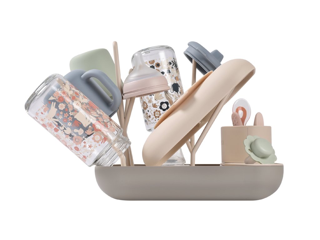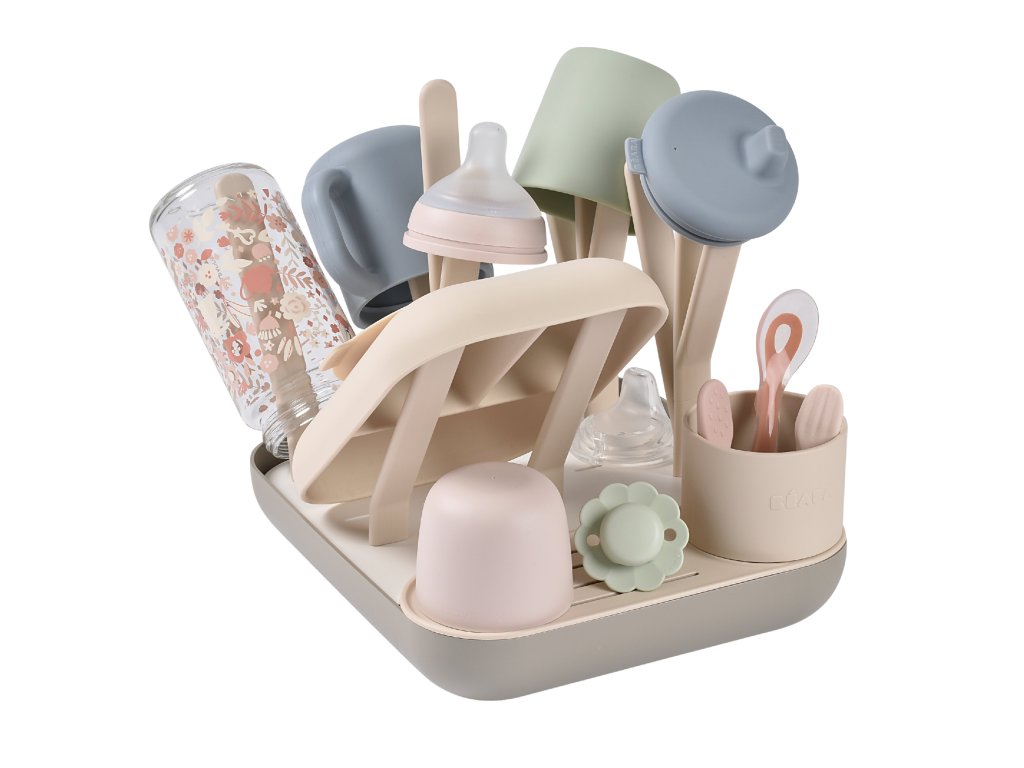 Variabilný stojan Beaba na sušenie dojčenských fliaš, hrnčekov, misiek, lyžičiek a doplnkov. Stojan má vyberateľné držiaky a umožňuje tak prispôsobiť jeho usporiadanie podľa typu a veľkosti riadu, ktorý na stojan potrebujete umiestniť. Odnímateľná základňa uľahčuje údržbu stojana a zároveň slúži na uloženie jednotlivých súčastí stojana, keď ho práve nepoužívate.