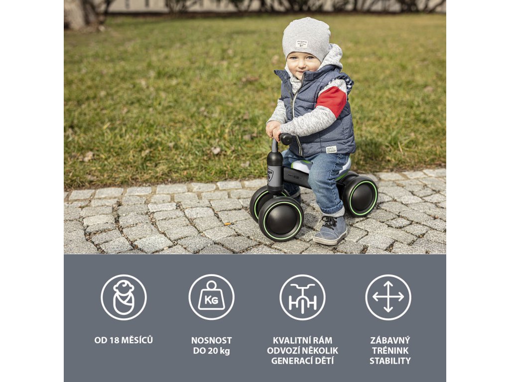 Odrážadlo je vhodné pre deti od 18 mesiacov do 20 kg a podporuje rozvoj rovnováhy a pohybových zručností.