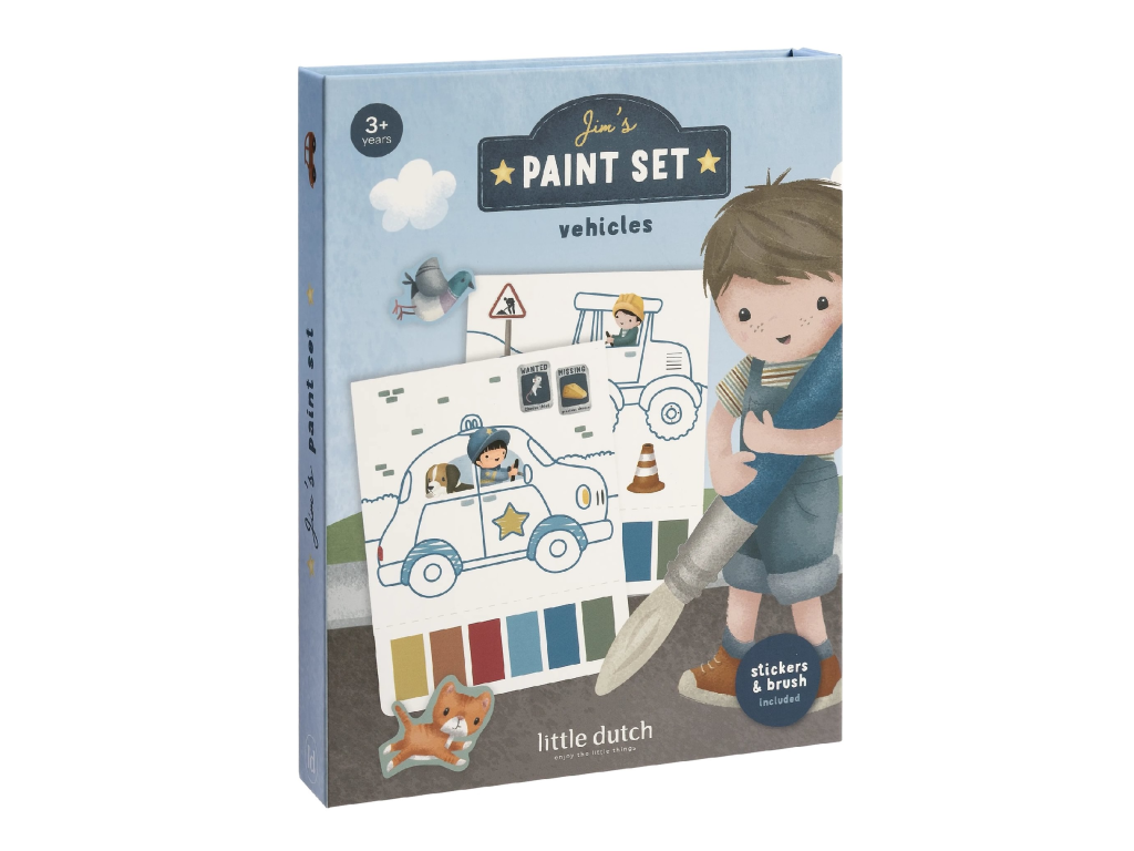 Omaľovánky s vodovkami a samolepkami Jim Doprava