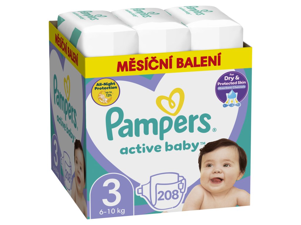 PAMPERS Active Baby Plienky jednorazové 3 (6-10 kg) 208 ks - MESAČNÁ ZÁSOBA