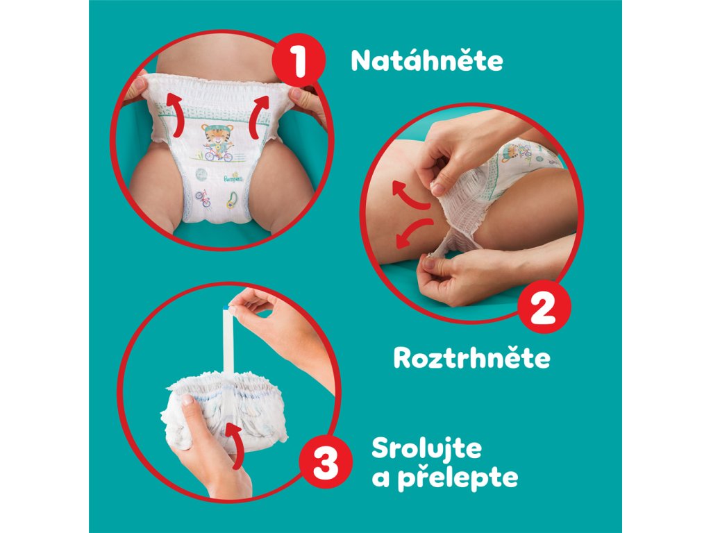 Plienkové nohavičky Pampers Premium Care sa rovnako ako všetky plienkové nohavičky od Pampers ľahko prebaľujú, aj keď je vaše dieťatko neposedné: obliekajú sa jedným ťahom a vyzliekajú sa roztrhnutím na bokoch . Potom ich stačí zrolovať a zaistiť pásikom pre ľahkú likvidáciu. Rovnako ako pre vás je aj pre Pampers bezpečnosť vášho dieťatka prioritou: Plienkové nohavičky Pampers Premium Care Pants sú dermatologicky testované a schválené dermatológmi z organizácie Skin Health Alliance.