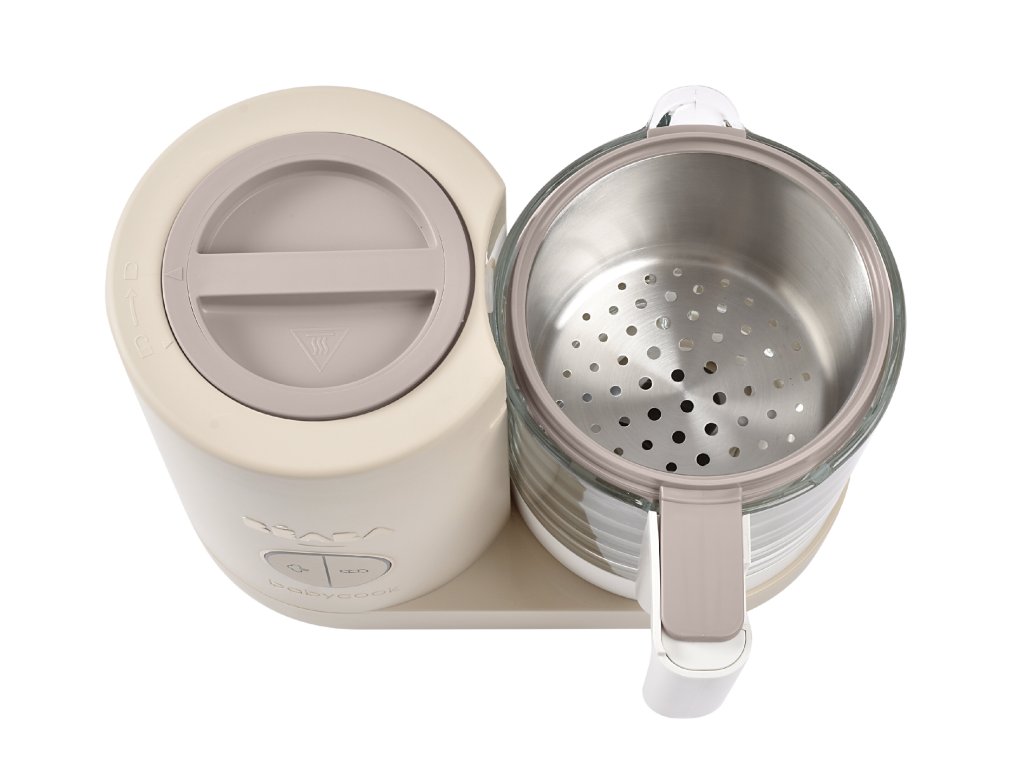 Úplne nový model Babycook® NEO má sklenenú nádobu s objemom 1250 ml a nerezový vkladací košík s objemom 1000 ml. Nerezový zásobník na vodu s vnútornou ryskou a so širokým vstupným otvorom uľahčuje plnenie vodou aj čistenie zásobníka.