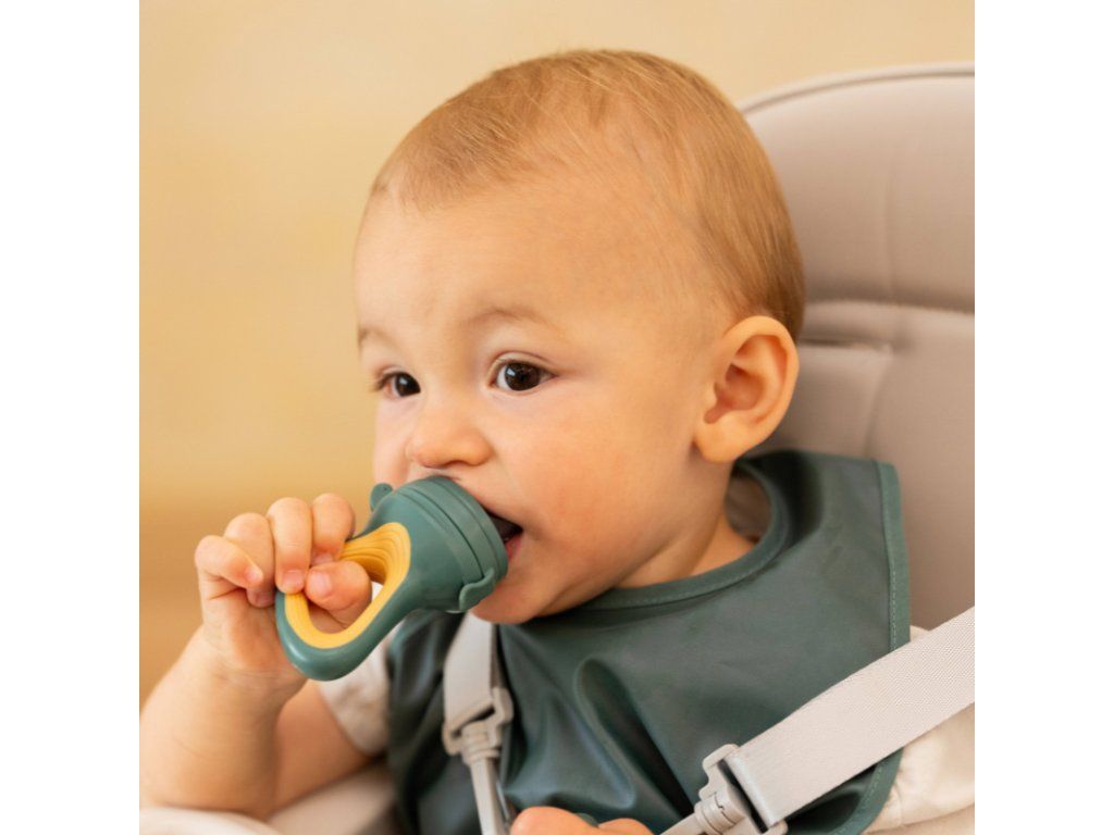 PETITE&MARS Cumlík silikónový na kŕmenie Fruzi Green&Ochre 6m+