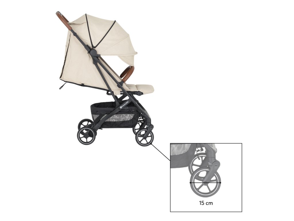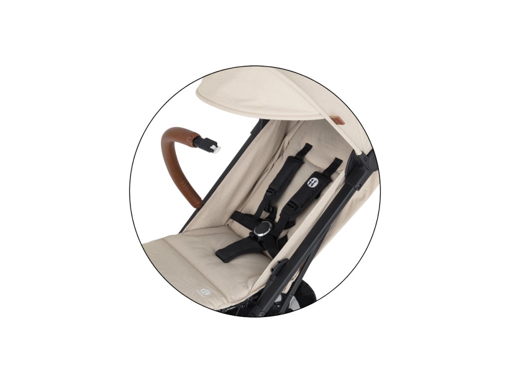 Kompaktný kočík, ktorý je ideálnym riešením pre rodičov, ktorí sú často na cestách a presúvajú sa, či už doma alebo po svete. Je navrhnutý s dôrazom na pohodlie a funkčnosť.