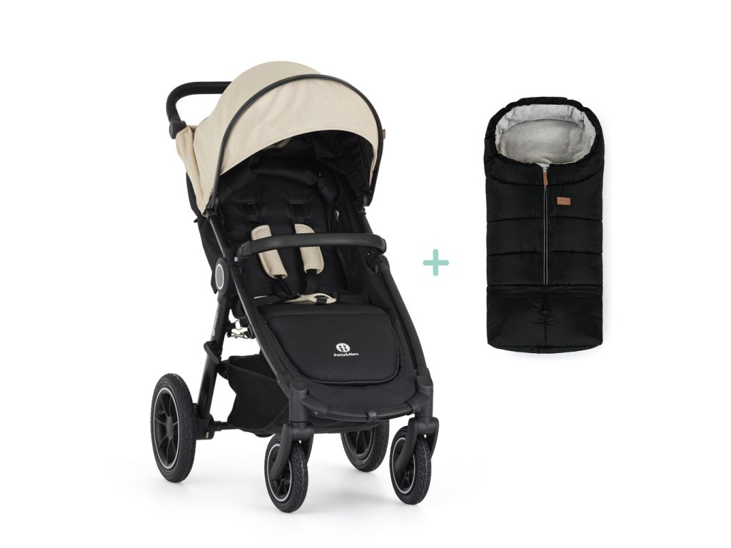 PETITE&MARS Kočík športový Street2 Air Black Sahara Beige + PETITE&MARS fusak Jibot