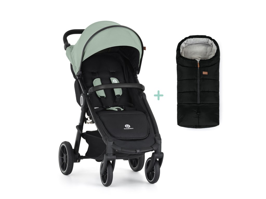 PETITE&MARS Kočík športový Street2 RWS Black Iron Green + PETITE&MARS fusak Jibot