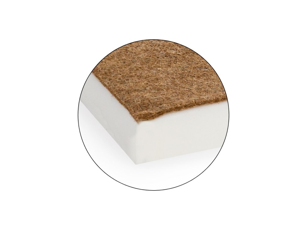 Vrchná vrstva matraca je vyrobená z prírodného kokosového vlákna, ktoré je veľmi vzdušné, odvádza vlhkosť a svojimi prirodzenými antialergickými a antibakteriálymi vlastnosťami zabezpečí zdravé prostredie pre bábätko. Nezadržiava vlhkosť ani zápach a nemnožia sa v ňom roztoče.
