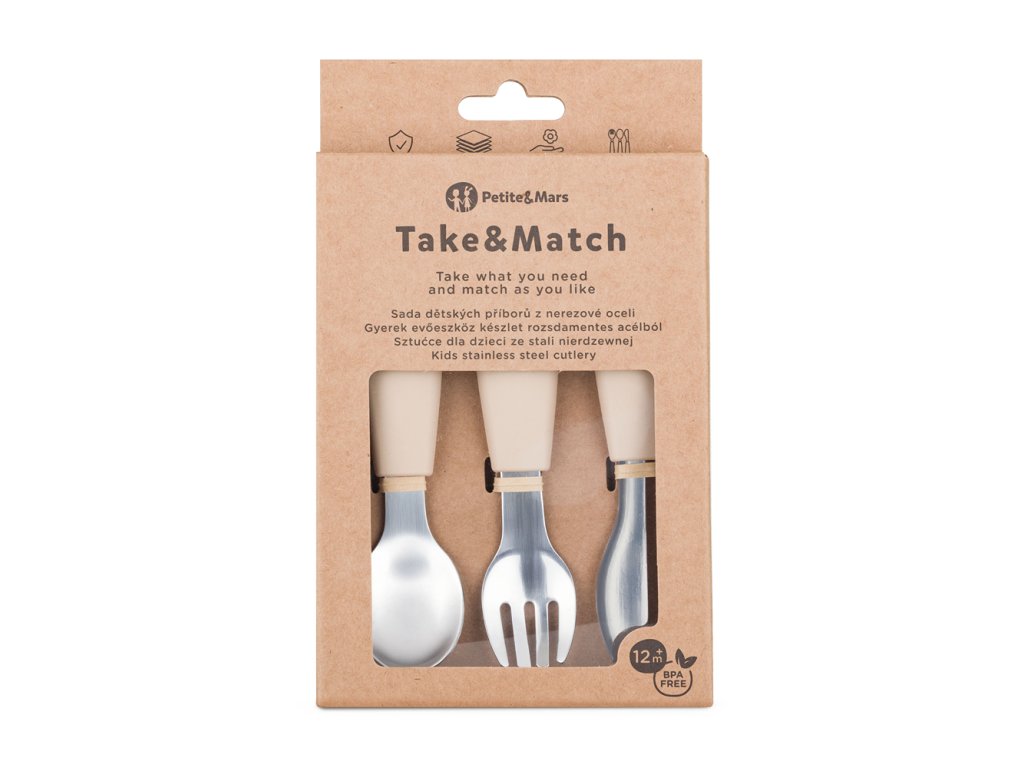 PETITE&MARS Sada príborov s nerezovej ocele Take&Match Desert Sand 12m+