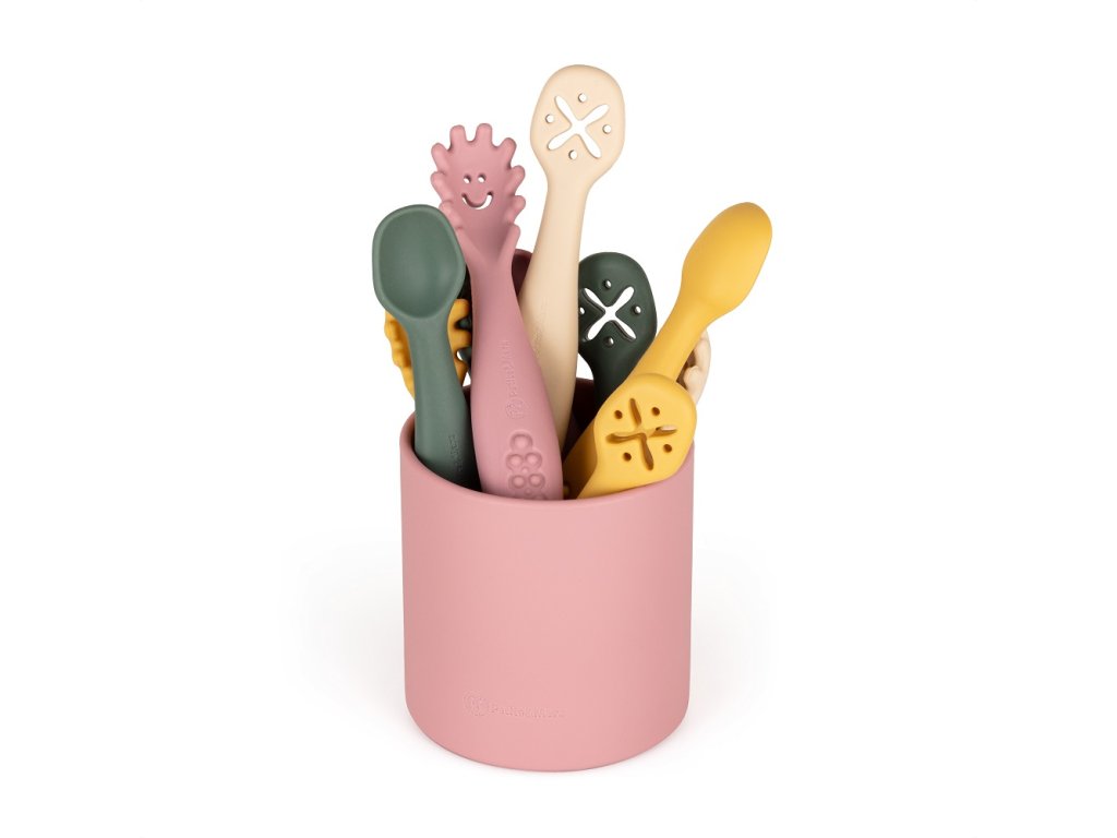 Set je vyrobený z potravinárskeho silikónu bez obsahu BPA. Vďaka tomu môže vaše dieťa s príborom jesť teplé, studené a rôzne konzistencie jedál. Vďaka pružnému silikónu sú lyžičky ideálne pre citlivé ďasná malého dieťaťa. Lyžičky sú vhodné pre deti od 6 mesiacov, ktoré sa zoznamujú s prvými príkrmami, a pre tie, ktoré sa už úspešne učia jesť samy. Zaoblené tvary a malé rozmery uľahčujú dieťatku ich uchopenie a papanie.