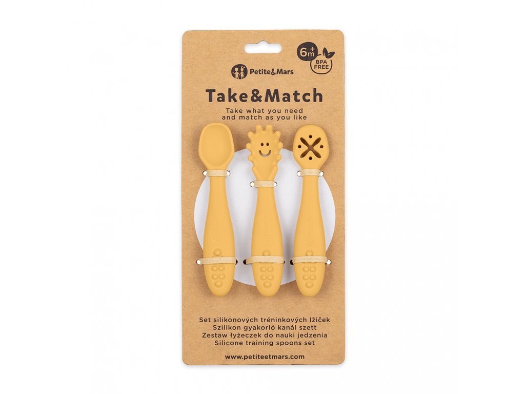 PETITE&MARS Set 3 ks silikónových tréningových lyžičiek Take&Match Intense Ochre 6m+