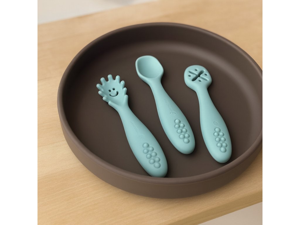 Set je vyrobený z potravinárskeho silikónu bez obsahu BPA. Vďaka tomu môže vaše dieťa s príborom jesť teplé, studené a rôzne konzistencie jedál. Vďaka pružnému silikónu sú lyžičky ideálne pre citlivé ďasná malého dieťaťa. Lyžičky sú vhodné pre deti od 6 mesiacov, ktoré sa zoznamujú s prvými príkrmami, a pre tie, ktoré sa už úspešne učia jesť samy. Zaoblené tvary a malé rozmery uľahčujú dieťatku ich uchopenie a papanie.