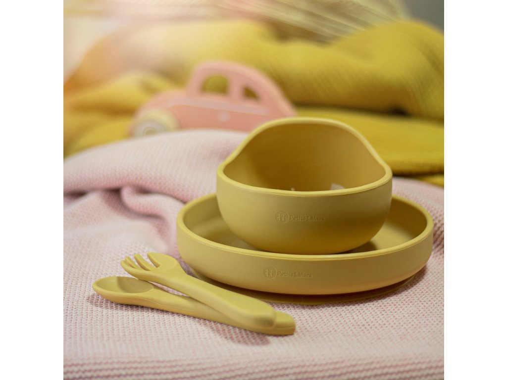 PETITE&MARS Set jedálenský silikónový TAKE&MATCH 3 ks Intense Ochre 6m+