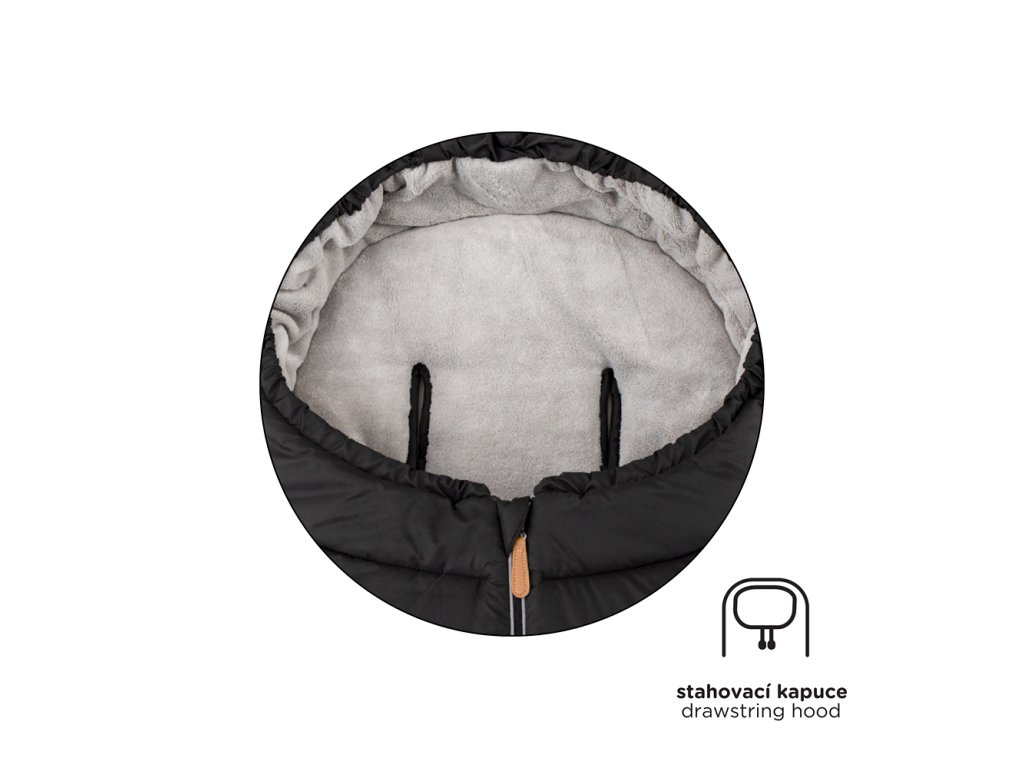 - pomocou šnúrok na stiahnutie okolo hlavičky sa vytvorí kapucňa, ktorá dokonale chráni dieťa voči vetru a chladu