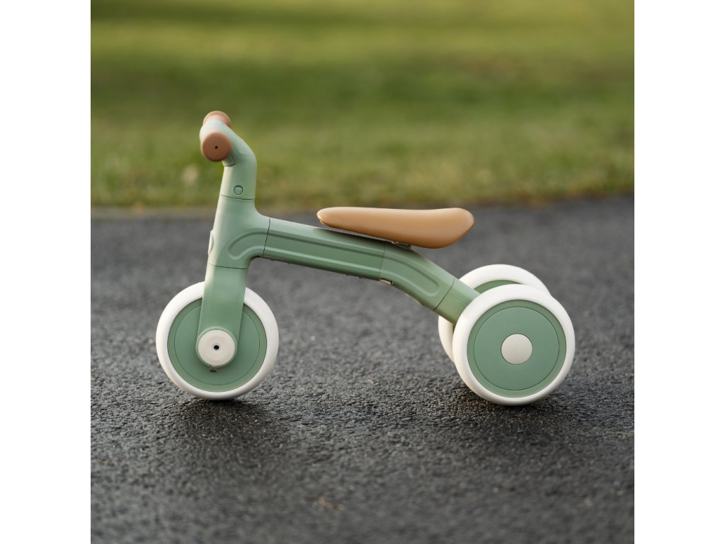 Bingo má otočné riadidlá, dve nastaviteľné výšky sedadla a váži len 2,3 kg, takže ho rodičia bez problémov prenesú – aj popri taške či dieťati v druhej ruke. Penové kolieska sú tiché a zvládnu interiér aj vonkajší povrch. Celý dizajn pôsobí moderne, jemne a zároveň nadčasovo.