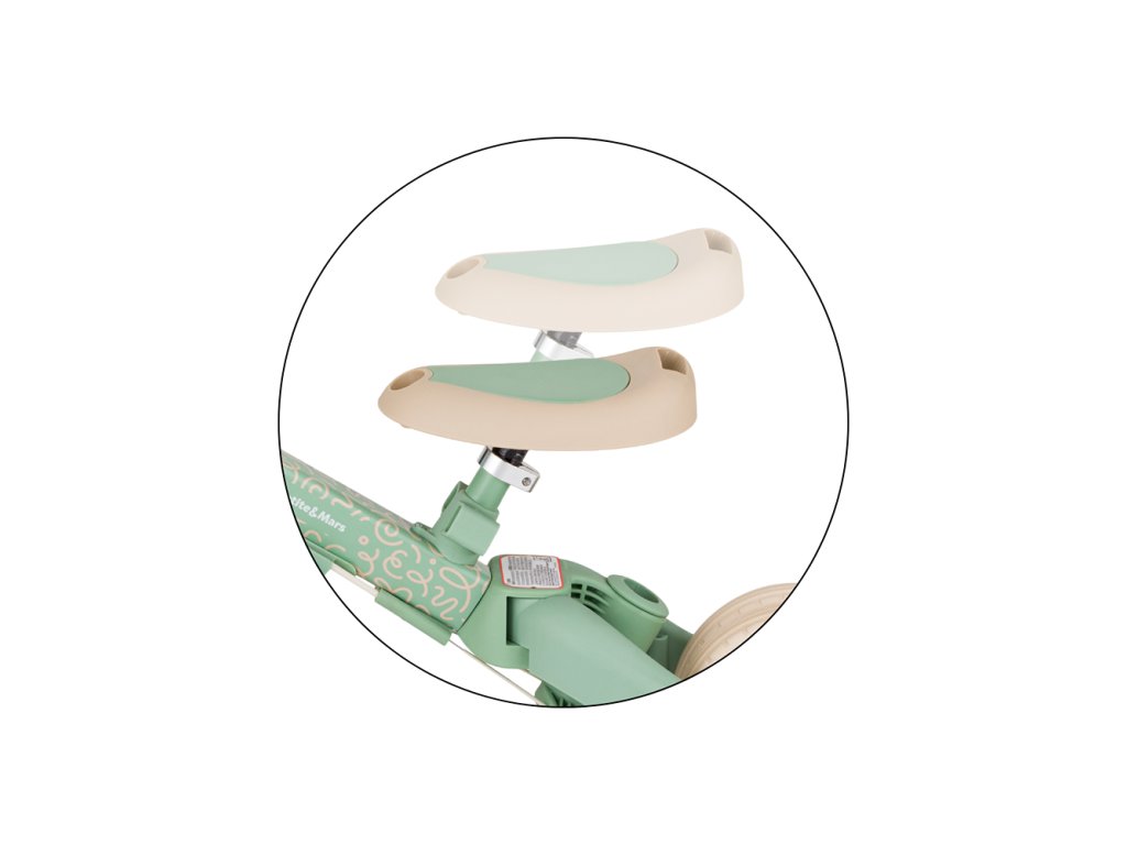 Multifunkčná trojkolka určená pre deti od 1,5 do 5 rokov alebo do 25 kilogramov je nielen dopravný prostriedok na presun a učenie sa rovnováhy, ale aj spoločník pre rastúce dieťa počas mnohých vývojových fáz. Vďaka premyslenej transformácii sa prispôsobí aktuálnym motorickým schopnostiam dieťatka – od trojkolky s asistenciou rodiča až po plnohodnotný bicykel s pedálmi.