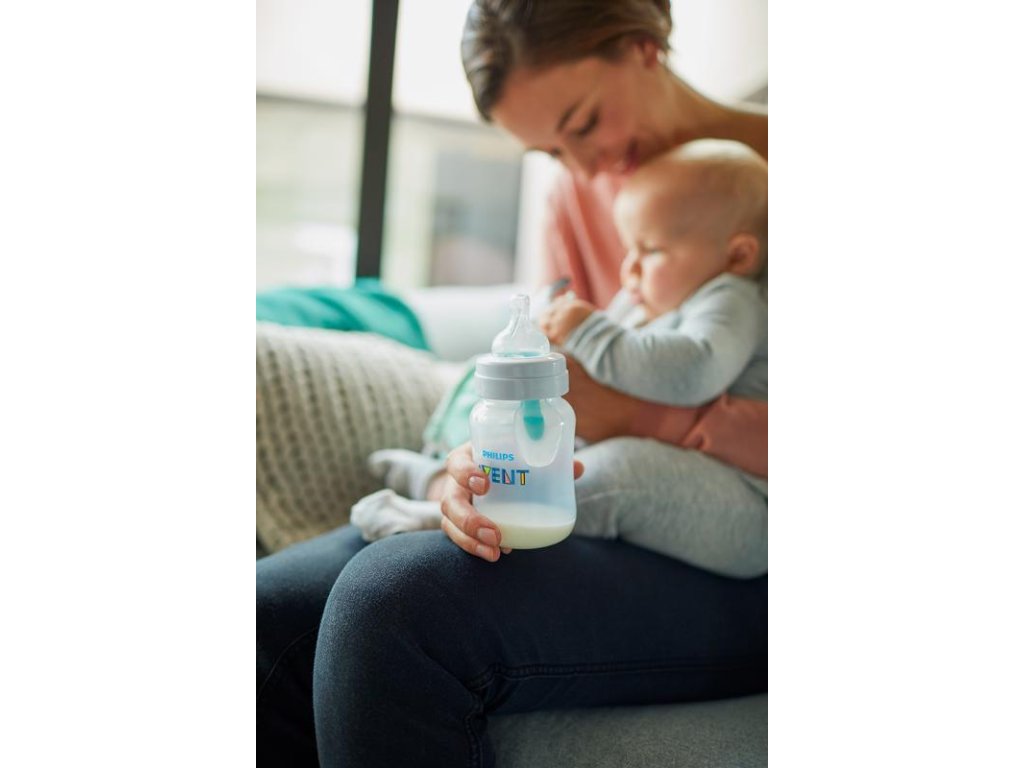 Používaním dojčenských fliaš AVENT s jedinečným patentovaným silikónovým cumlíkom s ventilom predchádzate hltaniu vzduchu počas kŕmenia a znižujete pravdepodobnosť vzniku koliky.