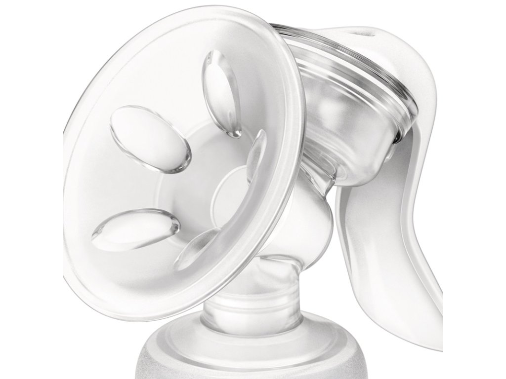 Kompaktná manuálna odsávačka materského mlieka s polypropylénovým zásobníkom 125 ml zásobníkom na materské mlieko. Je ideálna pre príležitostné odsávanie materského mlieka.