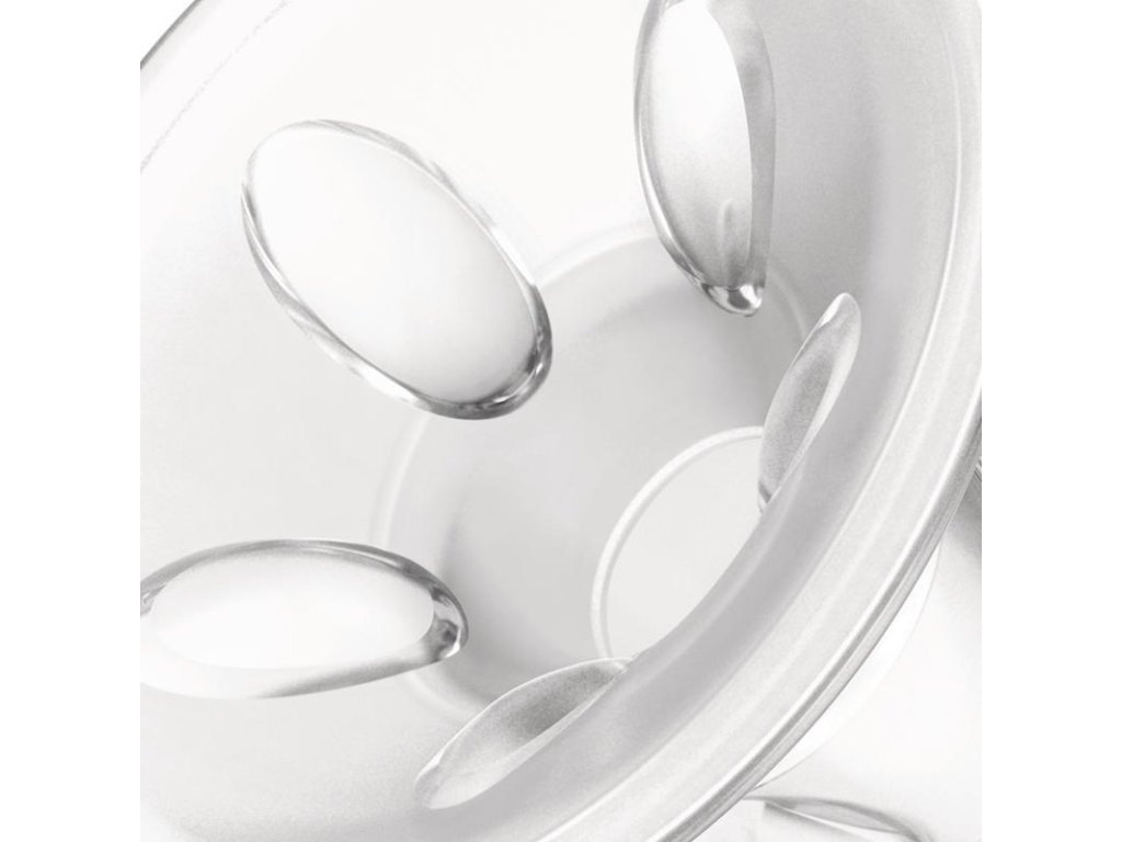 - Mäkká masážna vložka s 5 masážnymi výstupkami masíruje pri odsávaní prsník a presne simuluje dojčenie. Jej zamatovo mäkká štruktúra pôsobí hrejivo na pokožku.