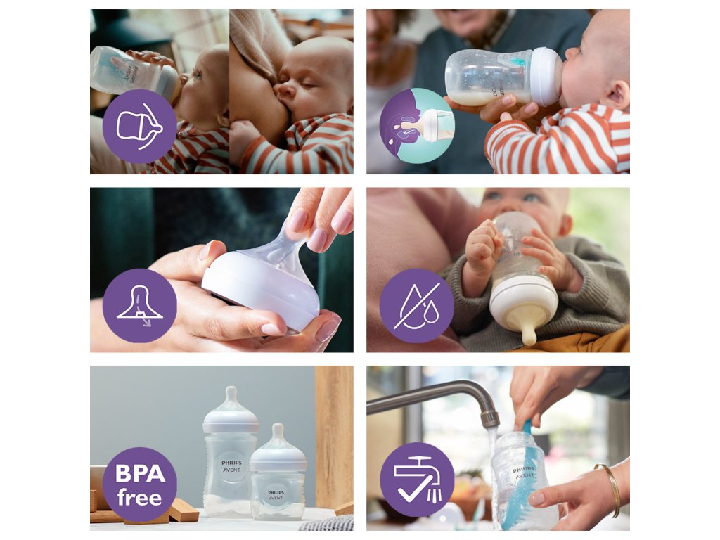 - Cumlík Natural Response - umožňuje dieťaťu sať, prehĺtať a dýchať ako pri pití z prsníka.