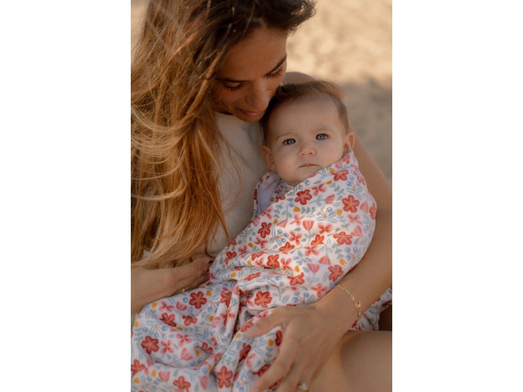 Mäkká froté osuška z jemnej organickej bavlny s krásnou potlačou je ideálna pre jednoduché a rýchle osušenie a zabalenie dieťaťa po kúpaní v bazéne, v mori aj doma po kúpeli.