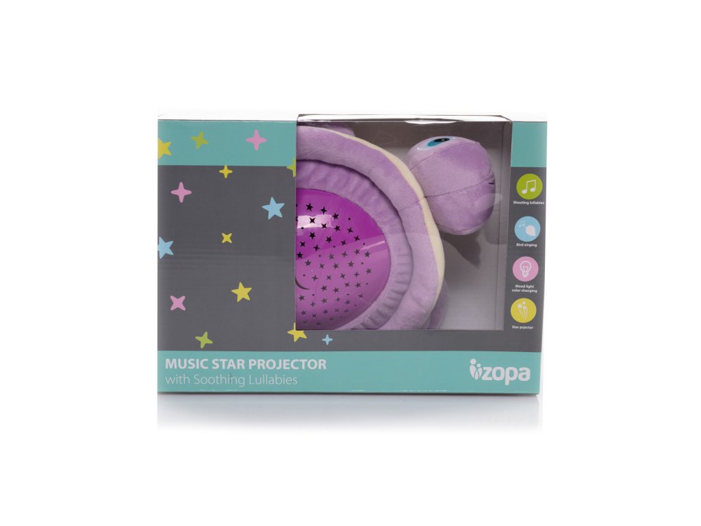 Projektor a hudba fungujú po vložení bateriek a majú automatické vypínanie.