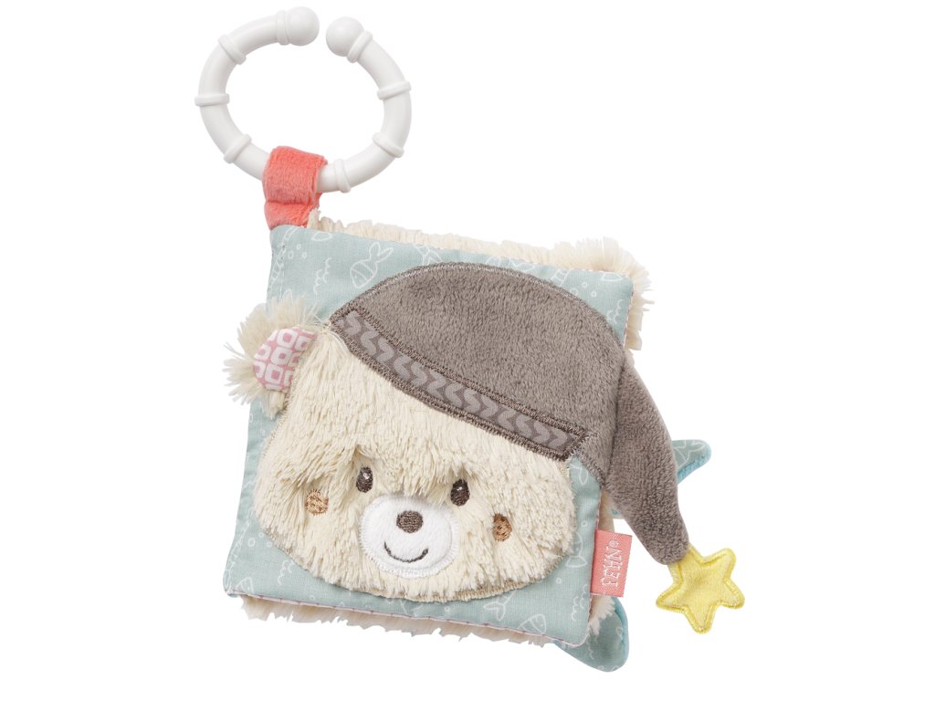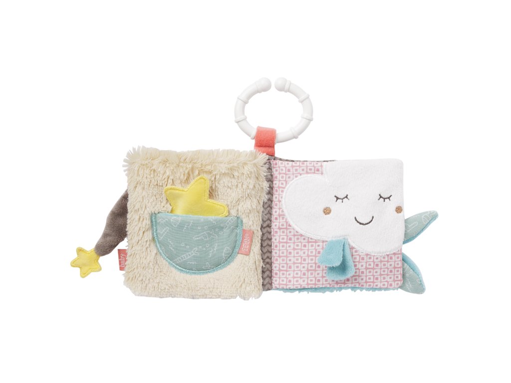 Interaktívná plyšová knižka, z príjemného materiálu s veselým dizajnom vyzýva deti k zapojeniu a prieskumu nových hmatových aj sluchových vnemov. Hmat, sluch aj zrak vašich detí bude s touto hračkou stimulovaný a deti sa rýchlo samy zabavia. Vďaka pastovému krúžku v tvare C, knižku ľahko kamkoľvek pripojíte.