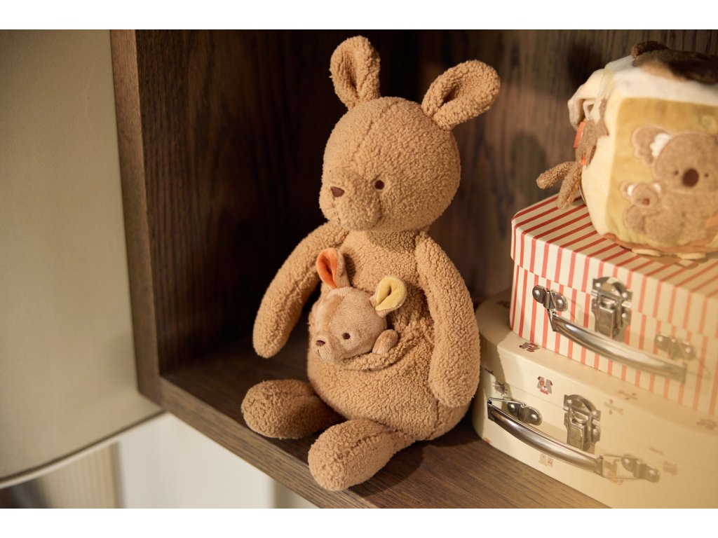 Rozkošná klokanie mamička s klokanom vo vrecku z mäkkého fleece materiálu je vhodná ako maznáčik do postieľky pre pokojné zaspávanie. Malého klokan je možné z vrecka vybrať. Hračka sa môže stať súčasťou mnohých detských hier aj slúžiť ako krásna dekorácia v detskej izbe.