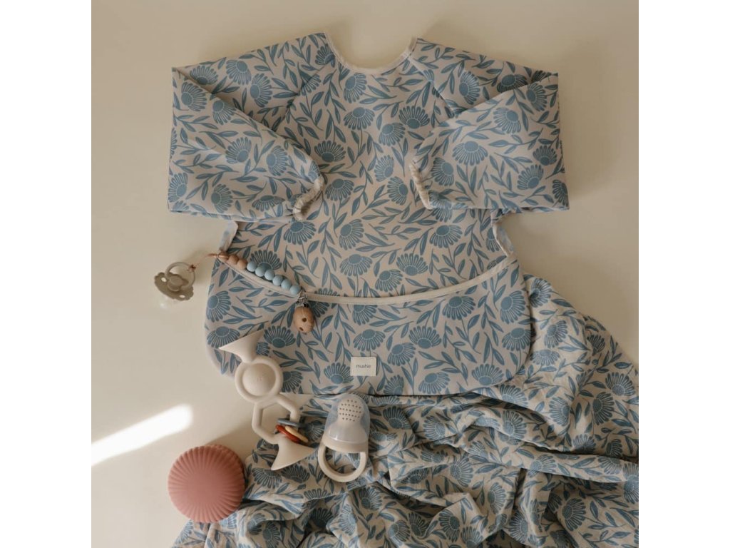 PODBRADNÍK S DLHÝM RUKÁVOM MUSHIE - BLUE FLOWERS