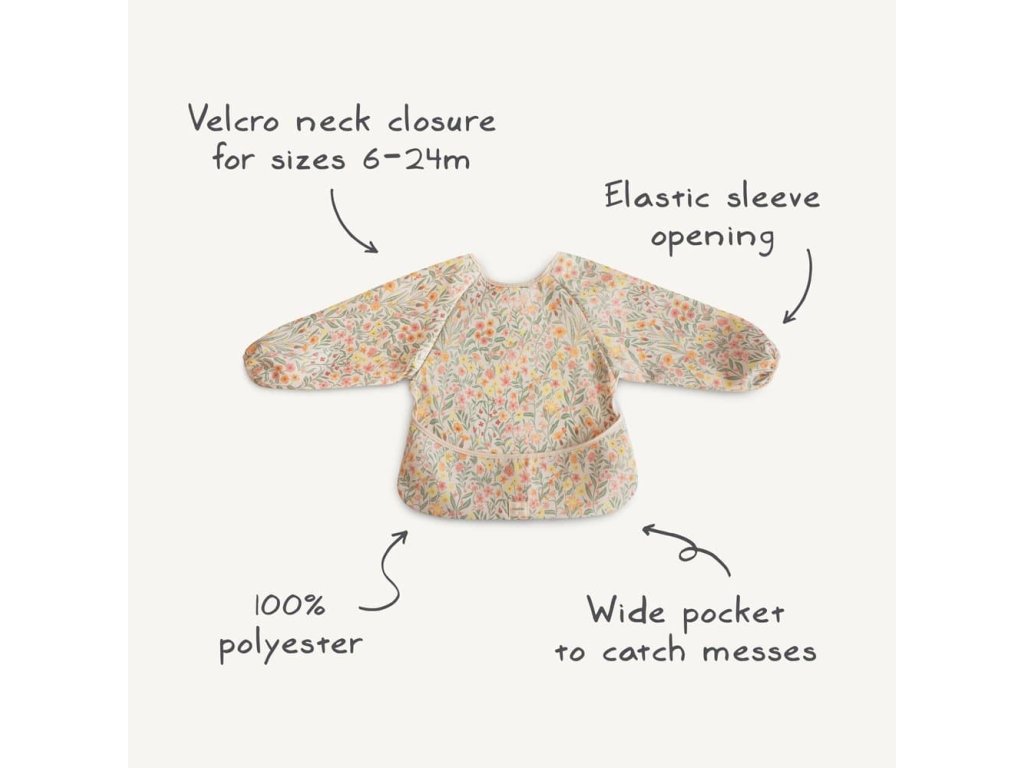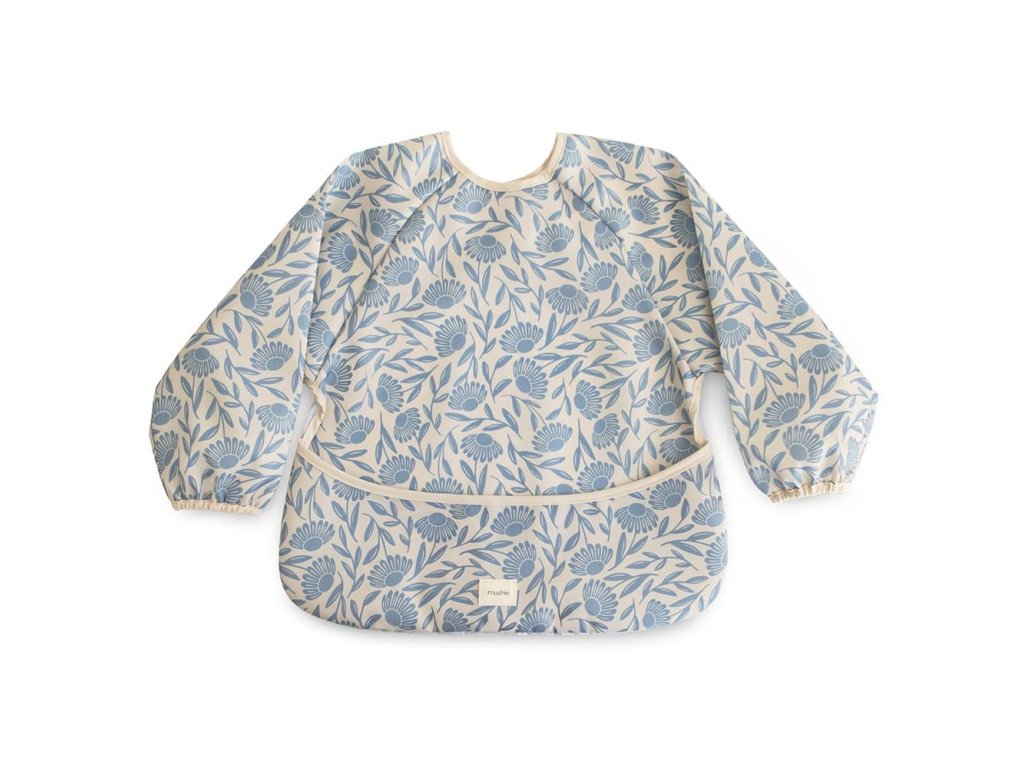 Podbradník s dlhým rukávom od značky Mushie pre bezproblémové jedenie!