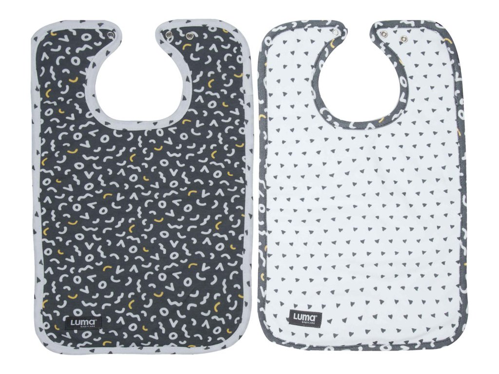 Sada 2 trendy podbradníčkov holandskej značky Luma Babycare. Pri každom jedle potrebujete ochrániť oblečenie vášho bábätka pred znečistením a pritom ho alebo ju nijako obmedzovať v objavovaní bohatstva chutí. Poslúžia vám trendy podbradníky, uzatvárateľné na jemné cvoky. 2 ks v balení.