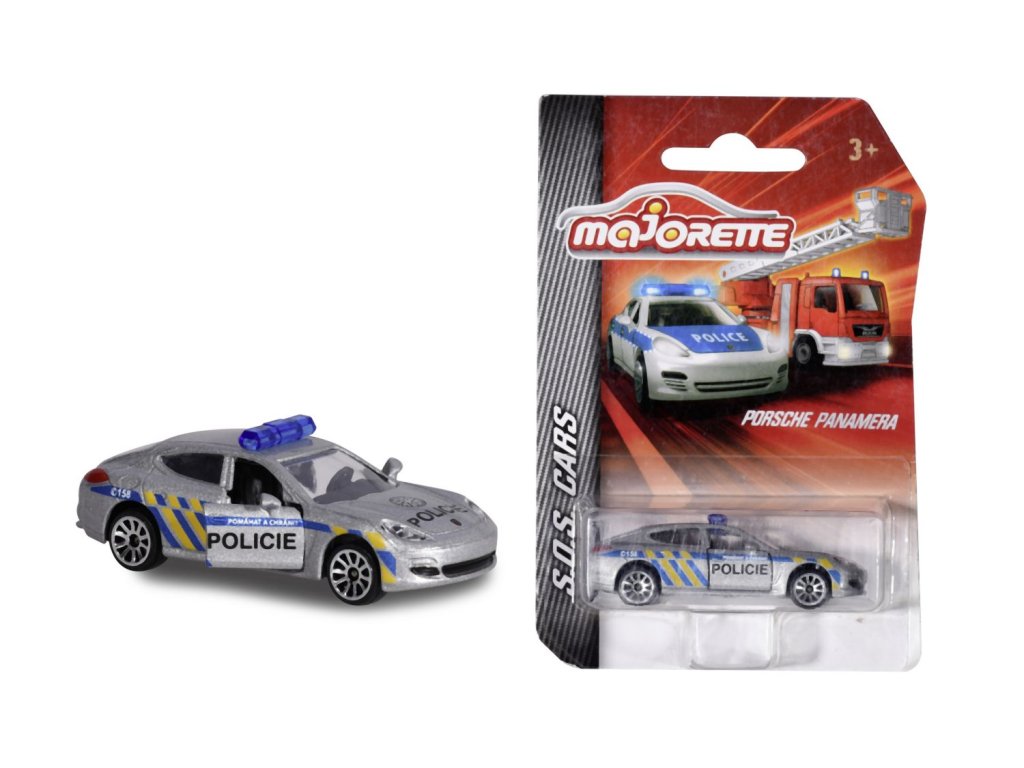 Kovové policajné auto na voľnobeh. Pohyblivé a/alebo otváracie časti. Dĺžka 7,5 cm.