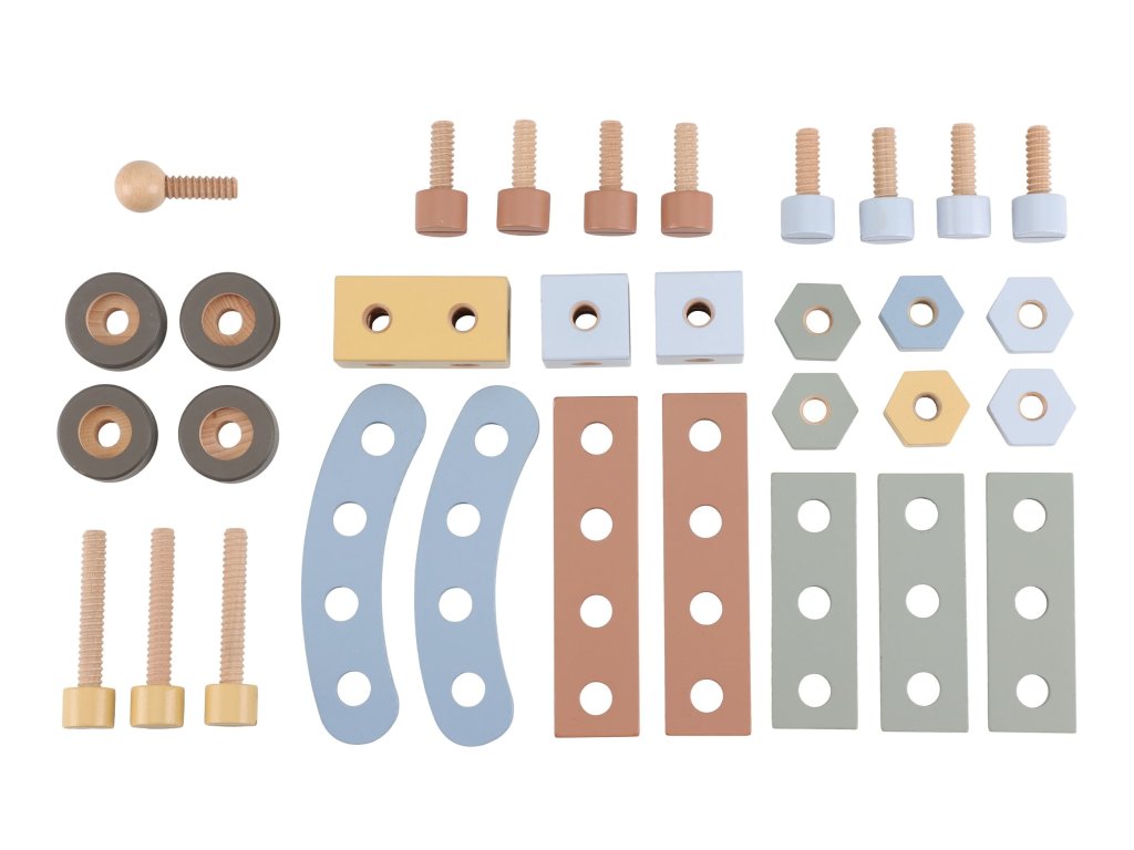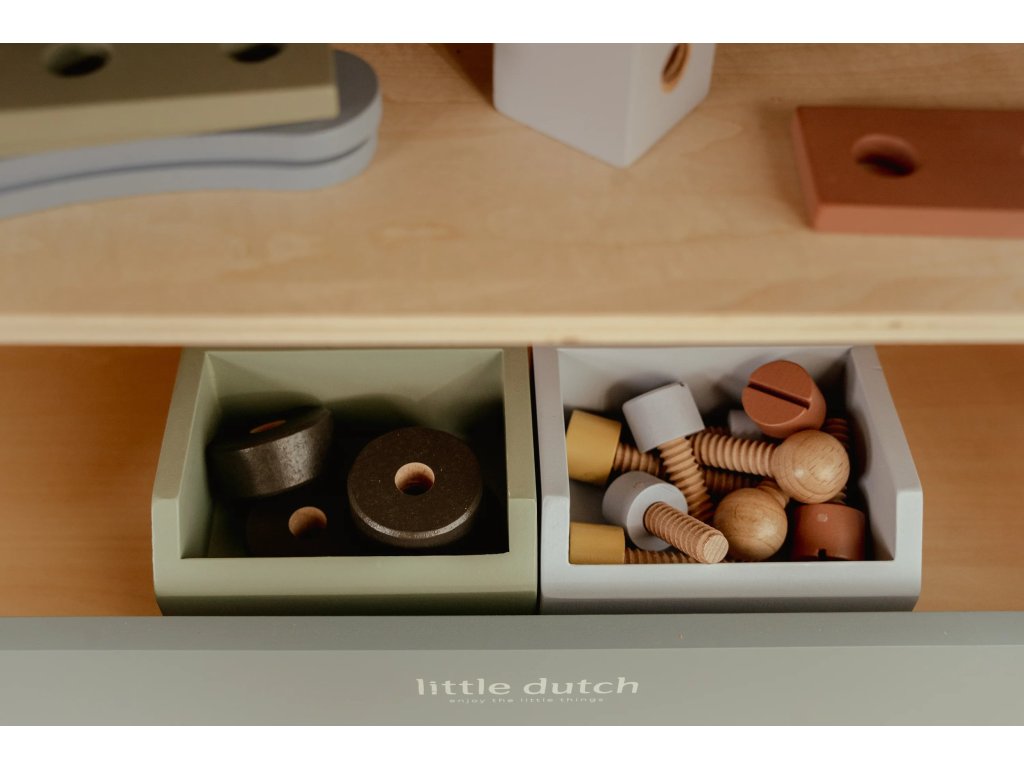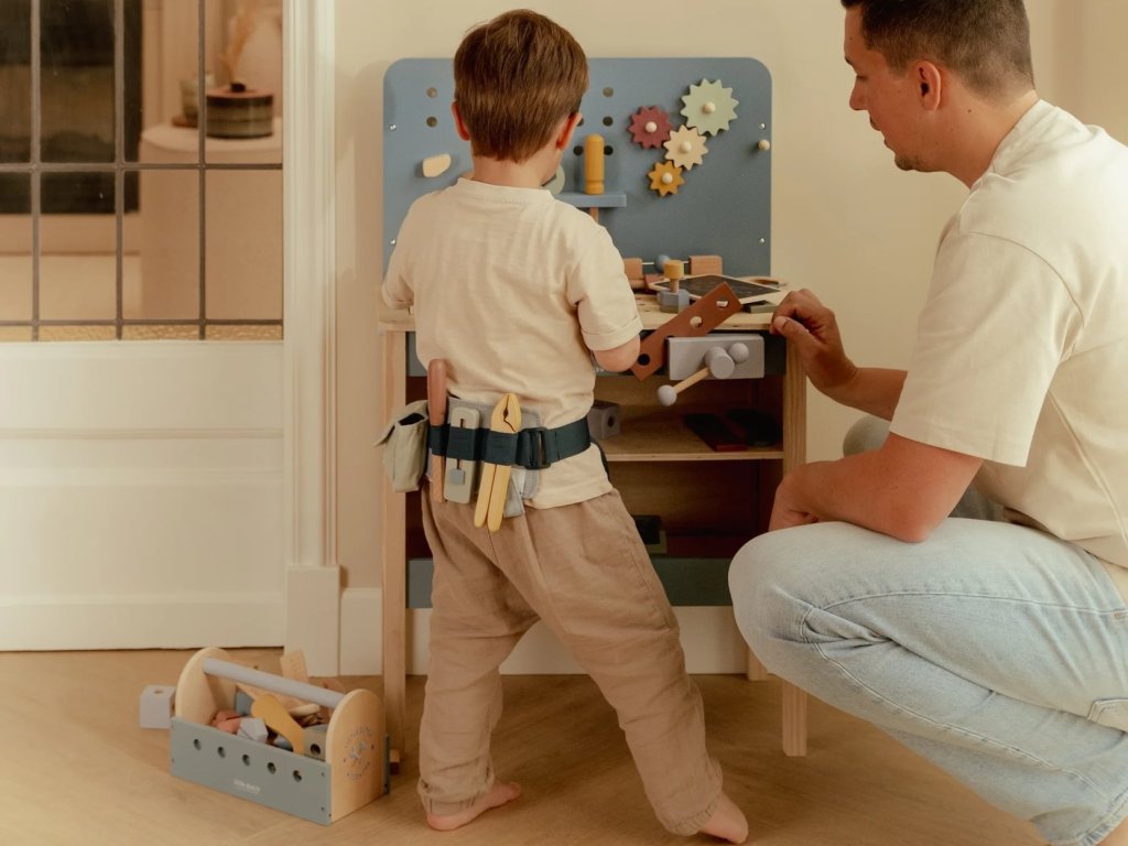 Malé deti milujú napodobňovanie svojich rodičov pri ich činnostiach a tento ponk s náradím im umožní zostaviť a skonštruovať rôzne veci, rovnako ako to vedia ich rodičia! Aktivitou pri skrutkovaní a zostavovaní častí dohromady a ich opätovnému rozpojovaniu sa učia jemnej motorike a sústredení, kreativite a predstavivosti. Skvelý spôsob, ako deťom ponúknuť kreatívny priestor na tvorenie a objavovanie.