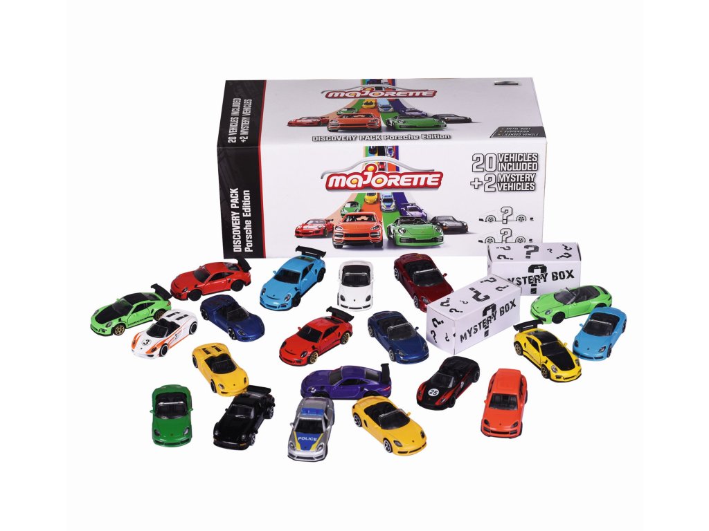 Súprava Discovery obsahuje 20 rôznych modelov vozidiel Porsche, vrátane cestných, prémiových, pretekárskych, historických a policajných vozidiel. Obsahuje tiež 2 exkluzívne záhadné vozidlá zabalené v špeciálnej krabičke. Kovové autíčka Porsche v mierke 1:64 (7,5 cm) majú otočné kolesá, zavesenie a kĺbové časti.