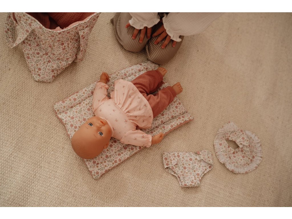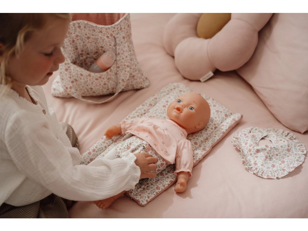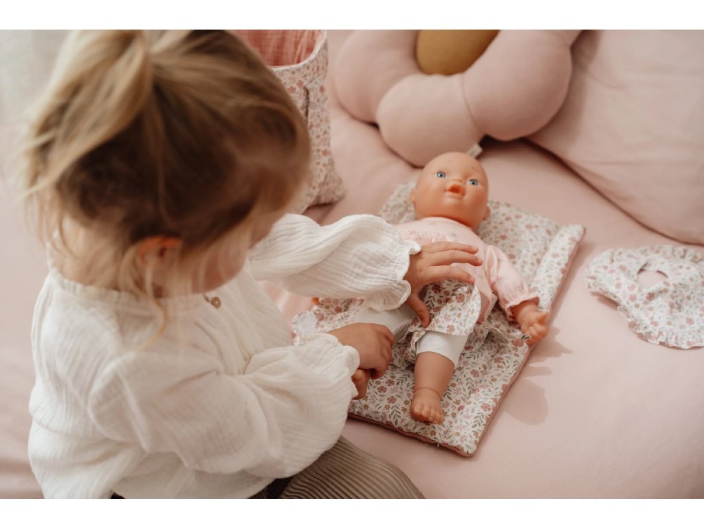 Štýlový kvetinový design krásne ladí s ďalšími doplnkami pre bábiky z kolekcie Little Dutch Soft Flowers.