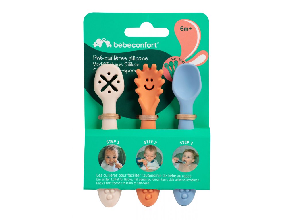 Bezpečné, praktické a hravé lyžičky Bebeconfort pomôžu vášmu dieťaťu s prvými krôčikmi k samostatnému stolovaniu! Súprava troch ergonomicky tvarovaných lyžičiek z mäkkého potravinárskeho silikónu je šetrná k citlivým ďasnám a navrhnutá presne pre malé detské ručičky.