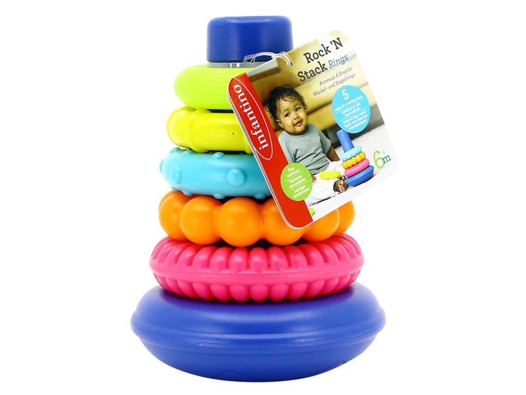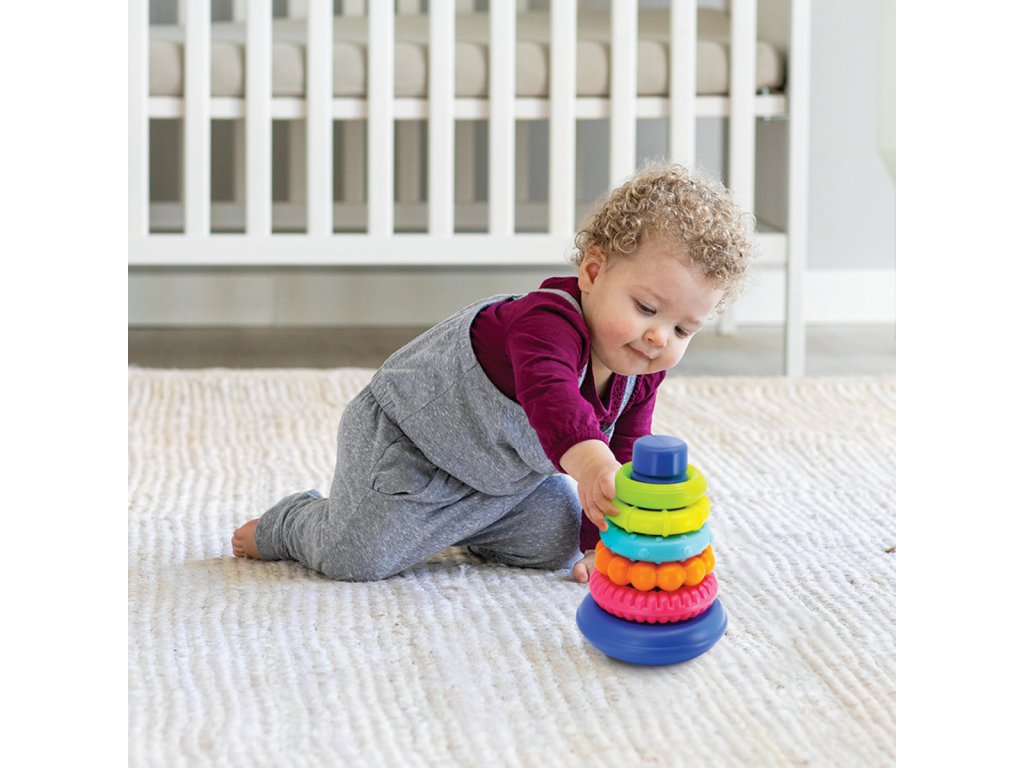 Pyramída je tvorená guľatou základňou a nasadzovacími krúžkami rôznych farieb, veľkostí i textúr. Dieťa sa snaží umiestniť krúžky v správnom poradí a vytvoriť z nich pyramídu. Vďaka guľatej základni sa hračka kýve do všetkých strán a nasadenie krúžkov bude pre dieťa celkom výzva!