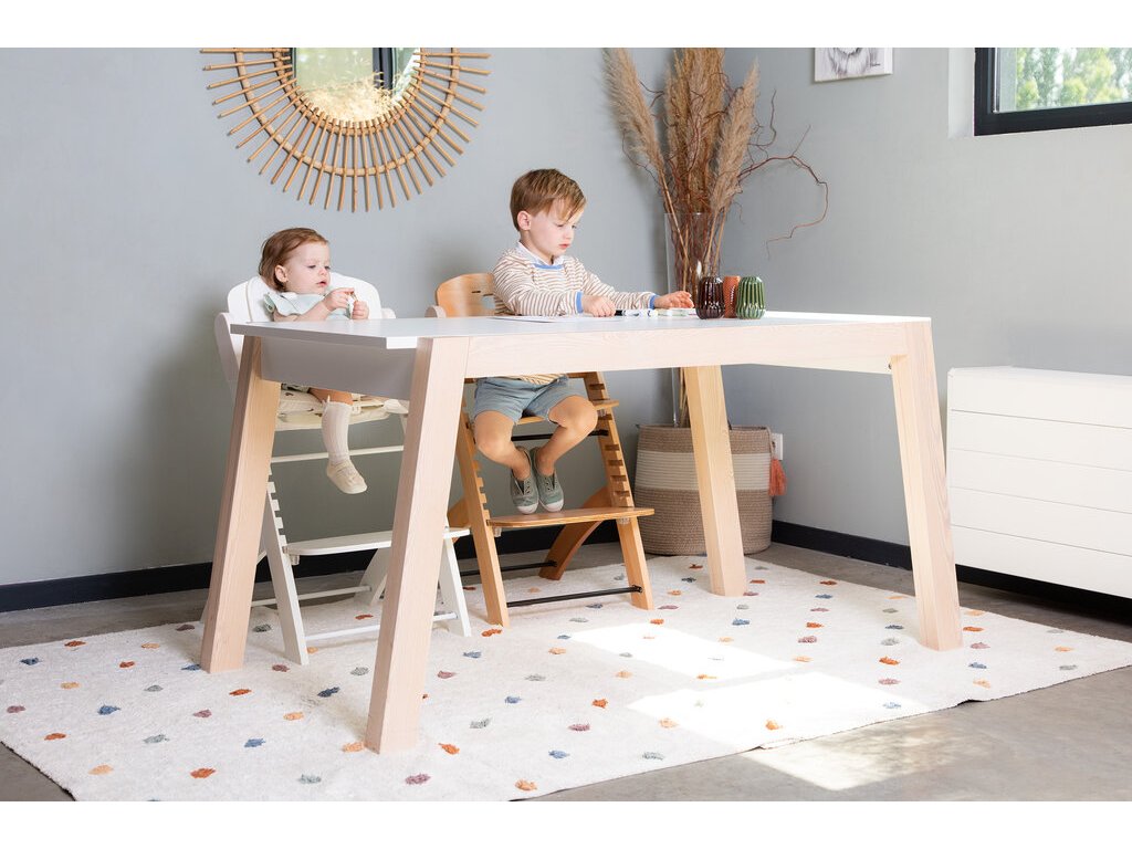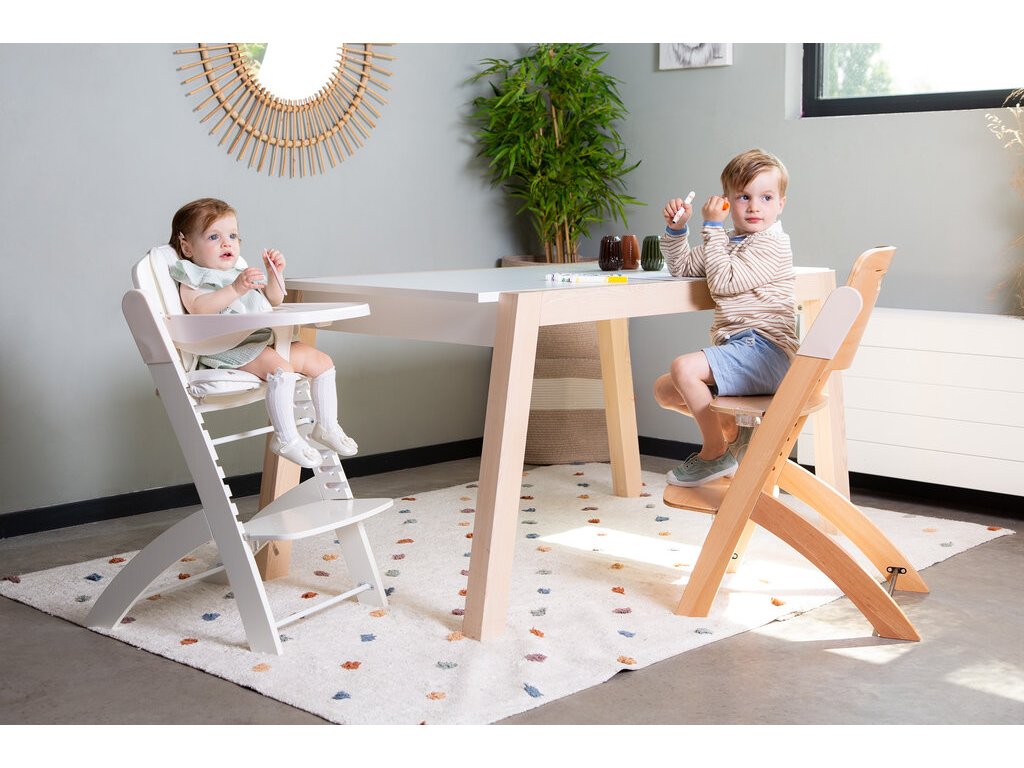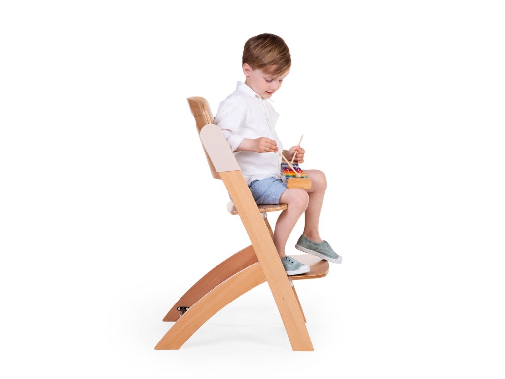 Rastúca stolička z bukového dreva Childhome Evosit umožňuje ľahké nastavenie výšky sedadla a opierky nôh bez skrutkovania. Vďaka svojmu nadčasovému dizajnu sa stolička stane aj krásnym doplnkom vášho interiéru. Odnímateľný jedálenský pult z ABS plastu sa ľahko udržuje utretím a je možné ho umývať umývačke.