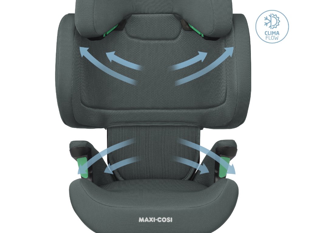 - Funkcia ClimaFlow pre optimálnu tepelnú pohodu dieťaťa - špeciálny vzor a pena operadla spolu s priedušnou tkaninou prispievajú k dobrej cirkulácii vzduchu po celú dobu jazdy