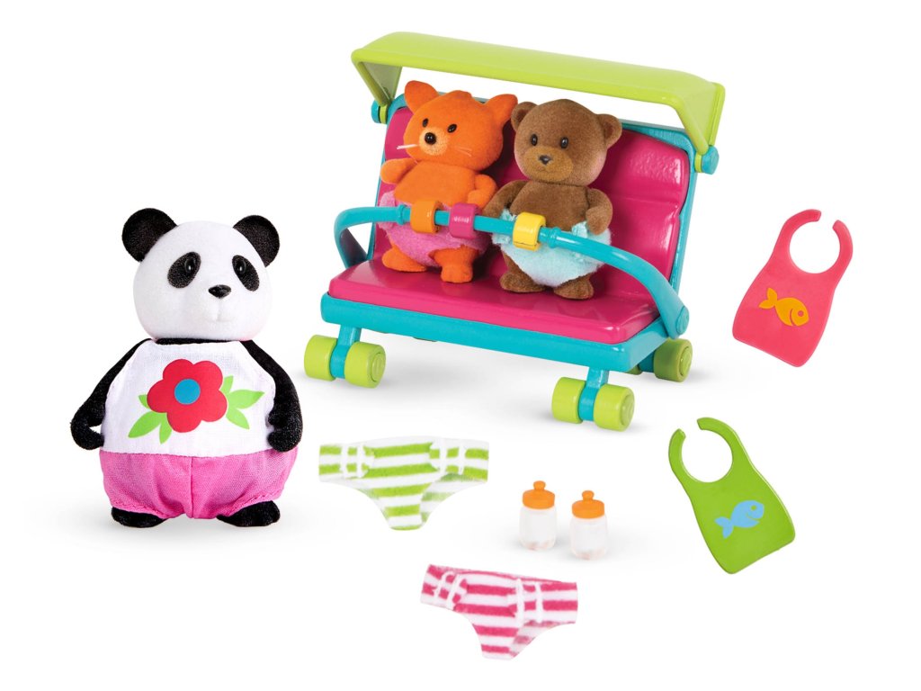 Sada obsahuje pestúnku pandu Liv, líščie mláďa Cookie, medvieďa Romeo, kočík, 4 detské plienky, 2 dojčenské fľaše a 2 podbradníky.