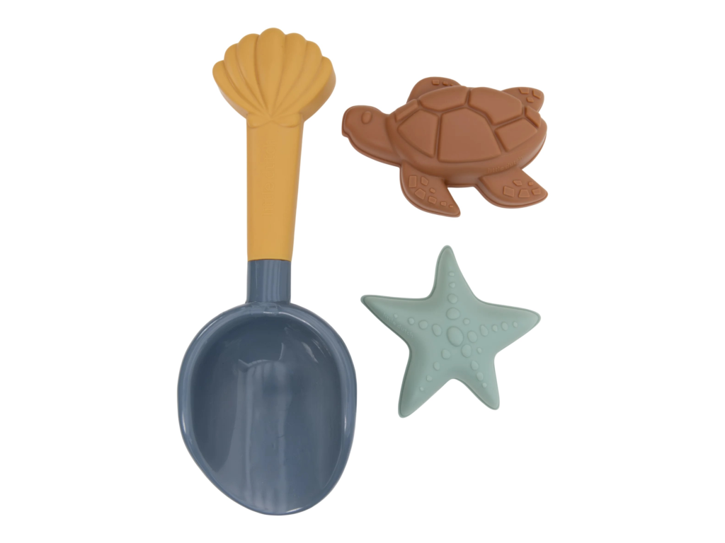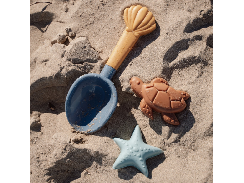 Sada na piesok s motívmi života na mori sa bude deťom hodiť doma na záhrade aj pri mori na pláži. Sadu tvorí lopatka a dve formičky v kvalitnom prevedení z pevného plastu.