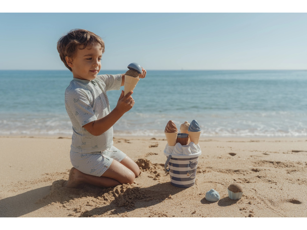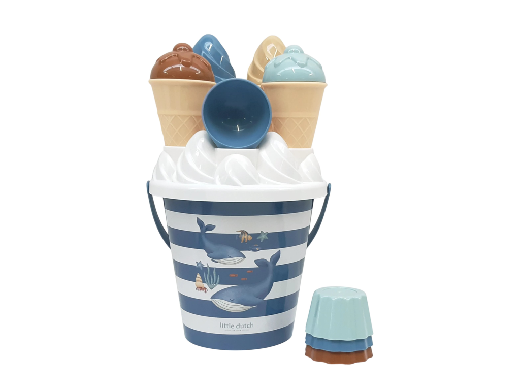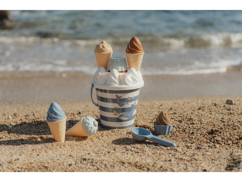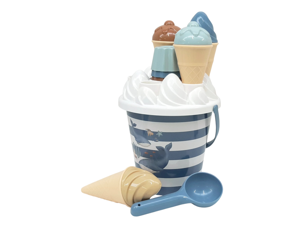 Zmrzlina patrí k letu a s touto rozkošnou sadou s krásnou potlačou motívov zo života pod morskou hladinou si ju vaše deti vyrobia aj z piesku. Sadu tvorí vedierko s rukoväťou, štyri kornúty, naberačka na zmrzlinu, sedem formičiek a sitko.