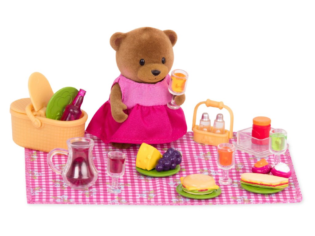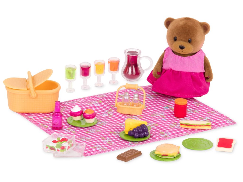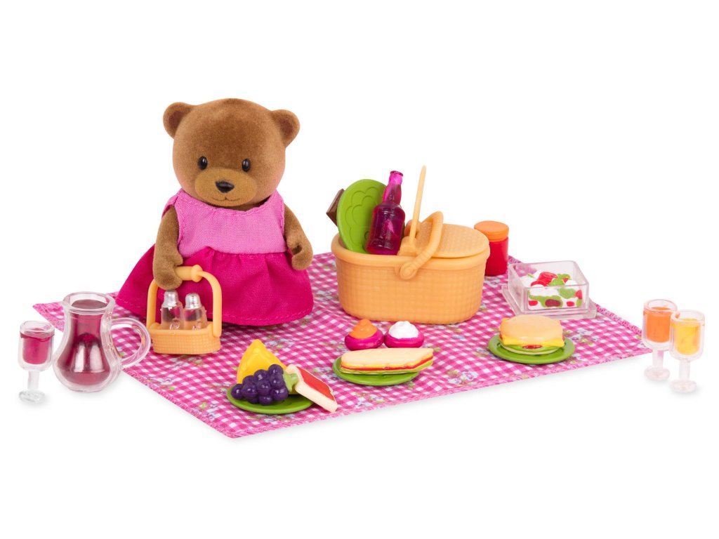 Keď je v mestečku Honeysuckle Hollow krásne počasie, je to ten pravý čas na usporiadanie pikniku v parku. V sade na piknik nájdete všetko, čo kamaráti z mestečka majú radi. Súčasťou balenia je postavička medvedieho dievčatka Hazel.