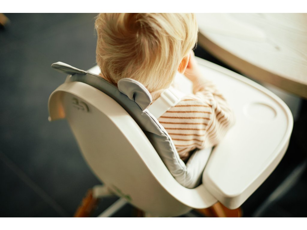 Polstrovaná sedacia podložka spríjemní vášmu dieťaťu sedenie v stoličke Childhome Evolu alebo Evosit. Otvory umožňujú pretiahnutie bezpečnostných pásov stoličky.