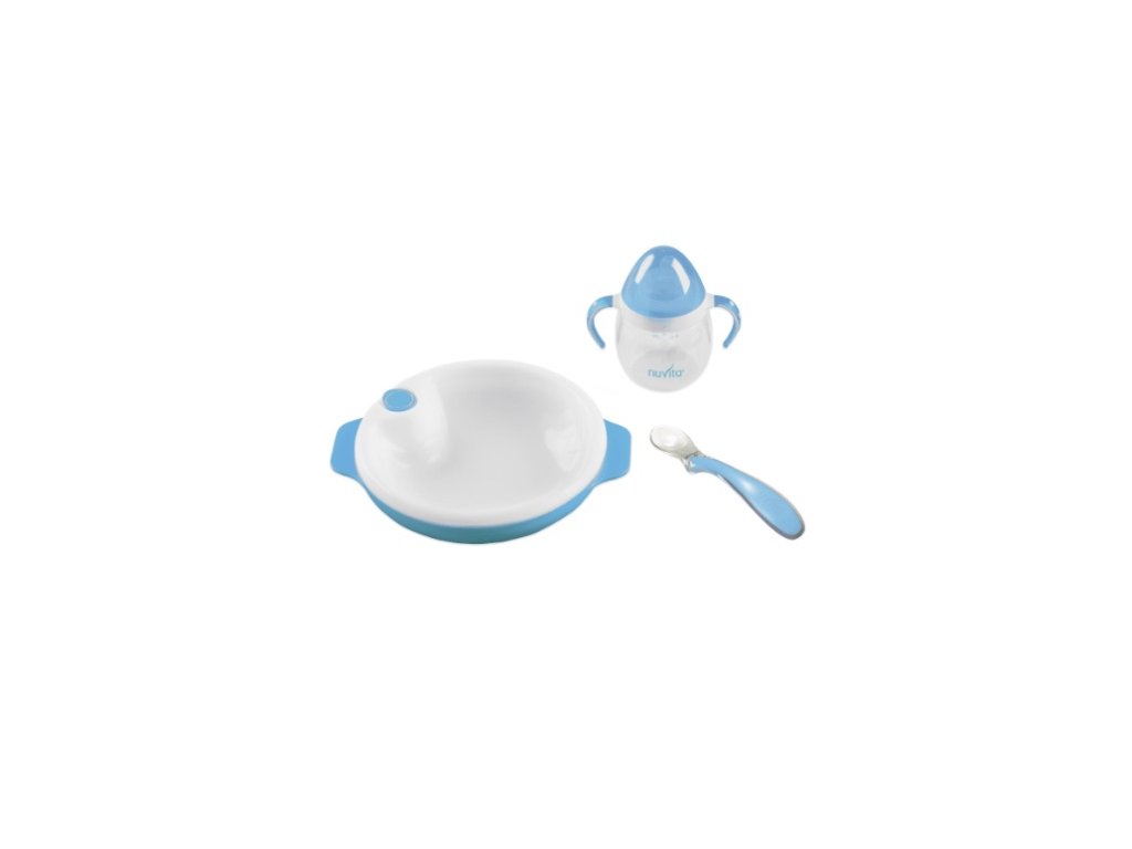 Set termotalířku so silikónovou lyžičkou a hrnčekom.