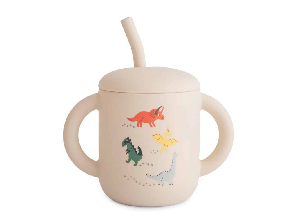 SILIKÓNOVÝ POHÁRIK SO SLAMKOU MUSHIE - DINOSAURS